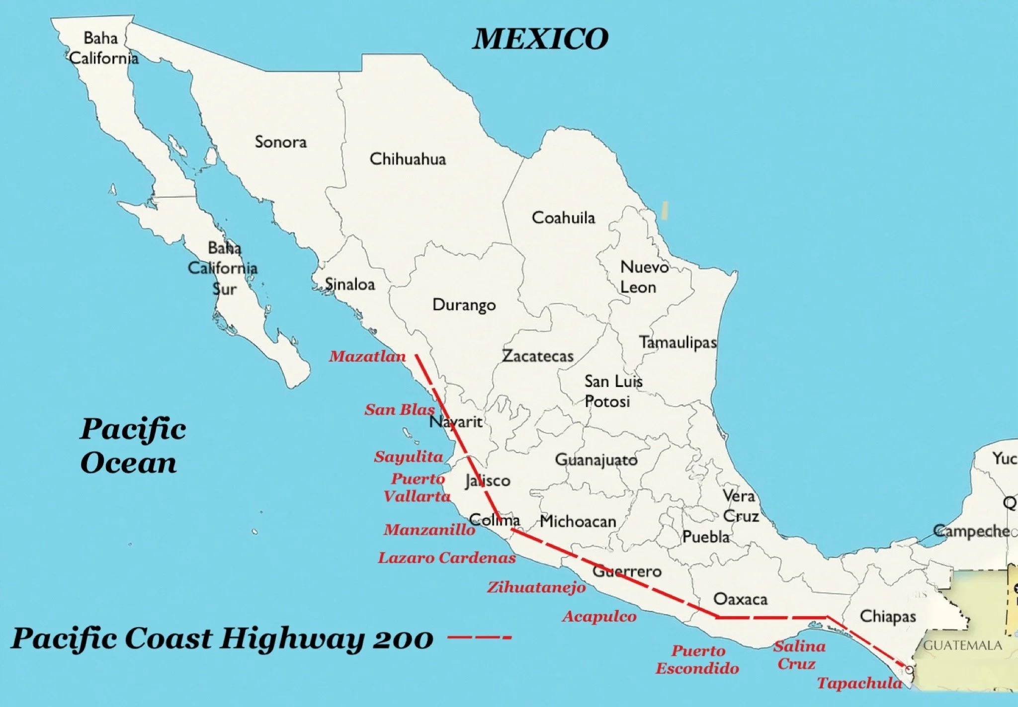 Southbound beneath Mexico’s sun and an endless blue sky.